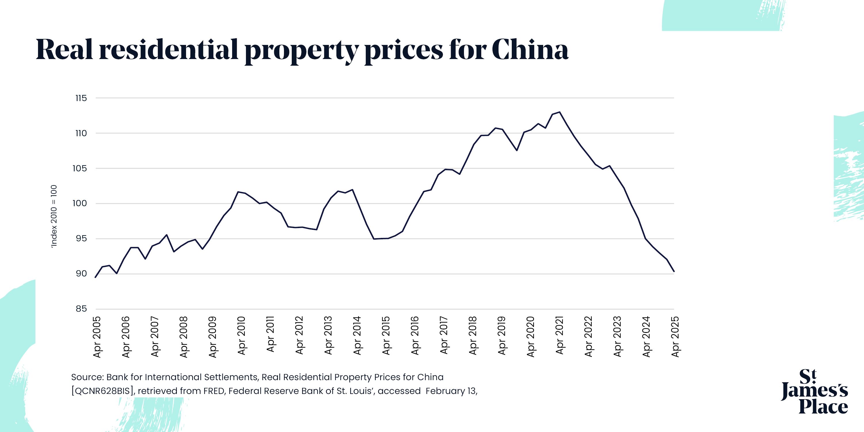 - Entering its sixth year, the main catalyst for the downturn in Chinese residential property prices was (in hindsight) self-inflicted. In 2020, the government created regulations aimed at reducing a debt-fuelled bubble in the property sector.