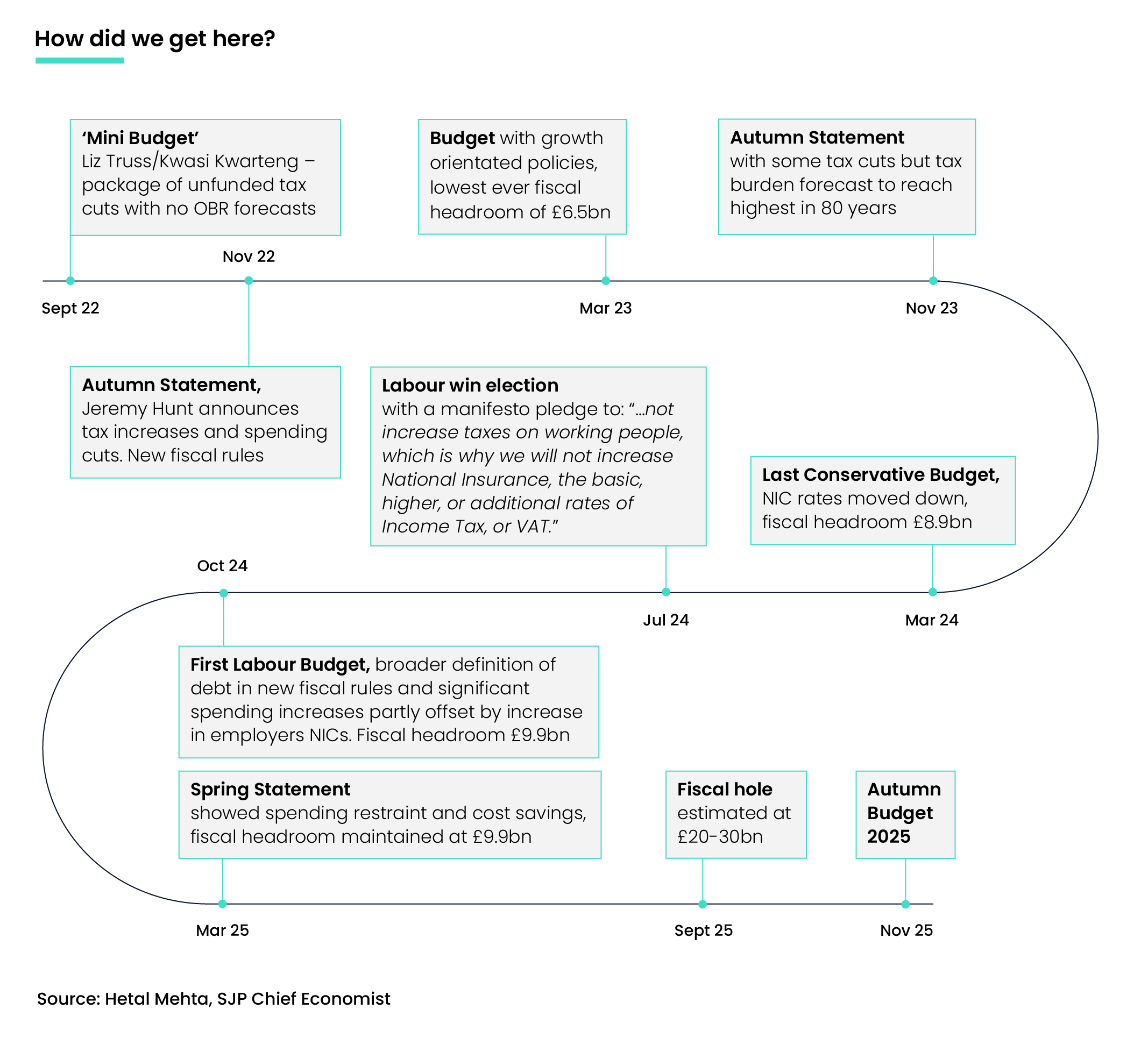 Post the tsunami of speculation and an unexpected and chaotic early release of the details, has Chancellor Rachel Reeves’s Autumn Budget created stability or upset? SJP’s chief economist Hetal Mehta outlines her take on what the Budget may mean for the UK economy and growth.