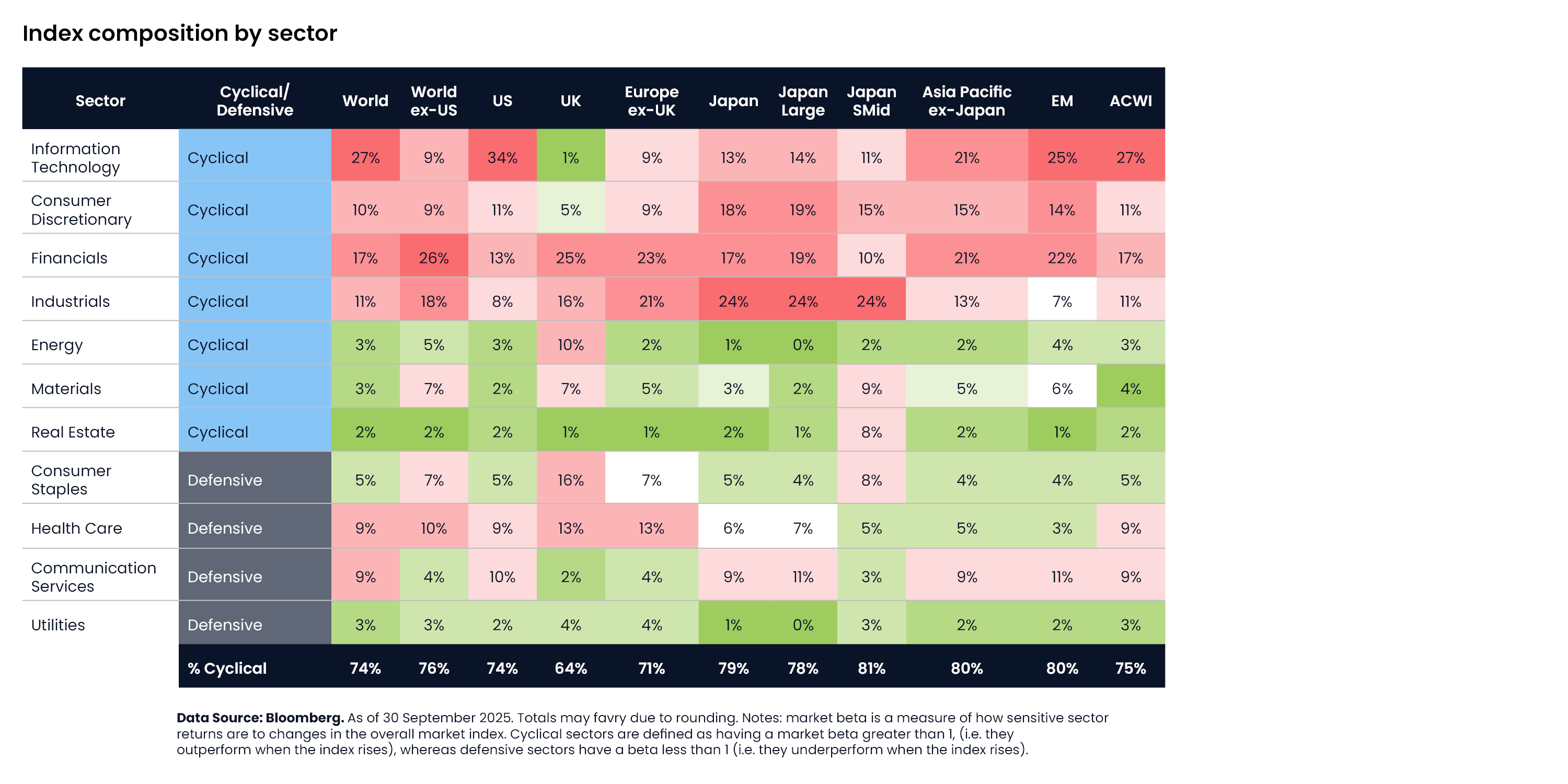 The eclectic spread of the sectors shows the true diversity of regional equity markets to each other. To put it simply, you get different exposures when accessing different regions.