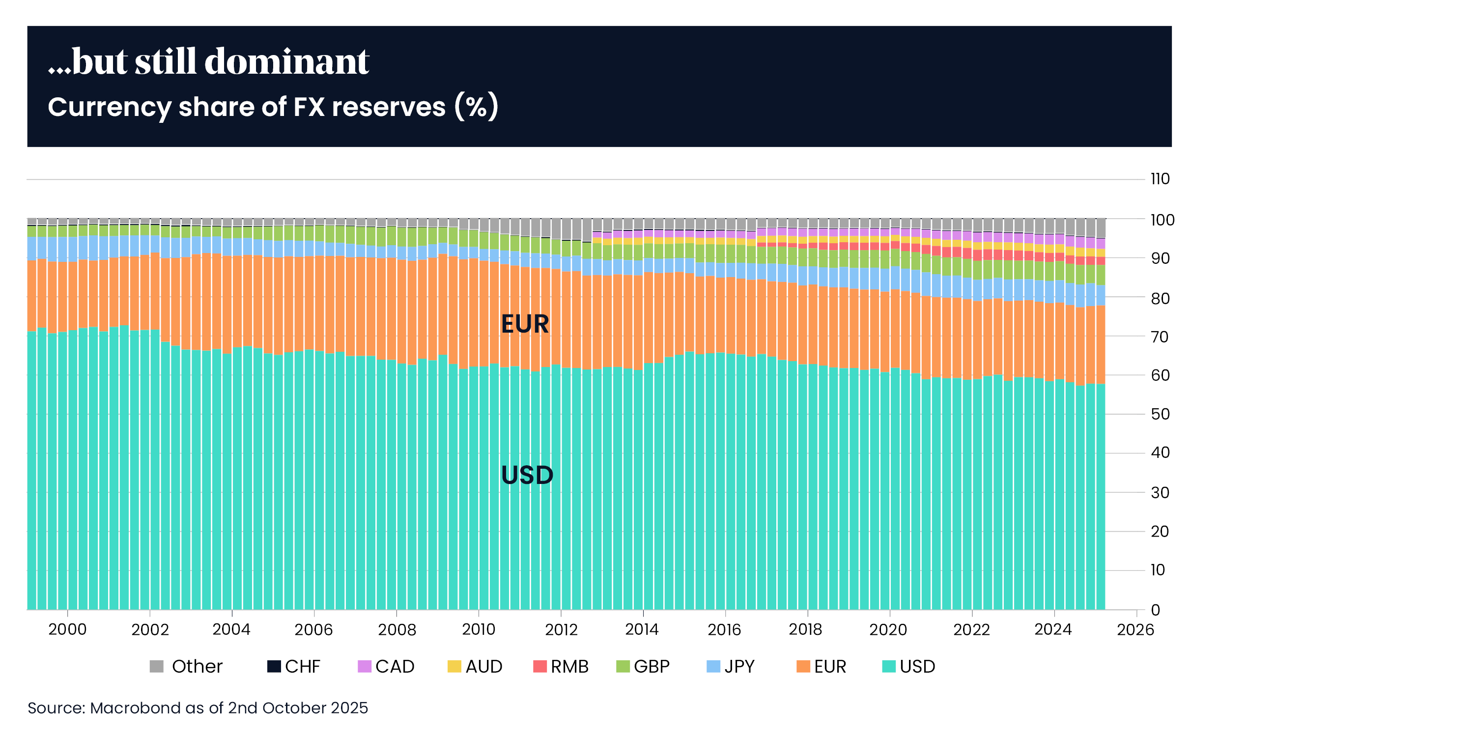 We continue to monitor the US dollar. However, a change of this magnitude in the global financial order would occur slowly, even over decades. The US remains our largest equity position, despite our underweight relative to market cap.