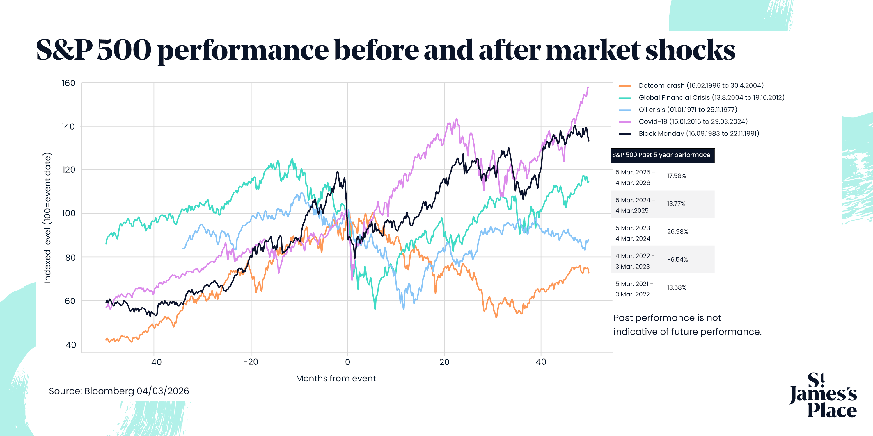 Many investors will be feeling the stress and uncertainty associated with the current events. However, those tempted to reduce their holdings should remember that market history, led by the US, shows us that following geopolitical shocks, stock markets bounce back.